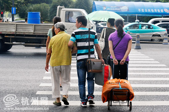 交警也很重视这个路口的秩序,配备了一名交警和三名协警维护交通。有一位大妈从南肖埠小区方向出来,往邵逸夫医院去,要连过两个斑马线。一位正在等红灯的先生二话没说,扶上大妈,一直送到医院门口。 |