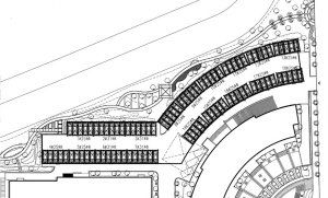 方案三:一排机械式停车库(6层),北排 总造价:2000万元,总泊位数277个。后期维护费用每年10万-17万元。 优点:造价低,存取车方便,大型车辆停车不受影响,施工周期较短,采光、噪声影响较小。 缺点:车位数较前两个方案少,后期运营维护成本较高。