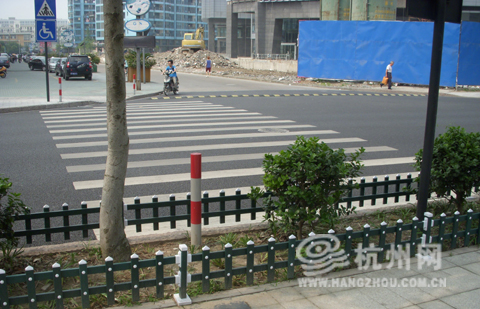杭州网讯 马路的人行横道延伸到路边的绿化带,却被绿化带的护栏“无情”截断,这样奇怪的施工您见过吗?近日,网友潘小姐就遇到了这样的怪事,并向杭网议事厅投诉。