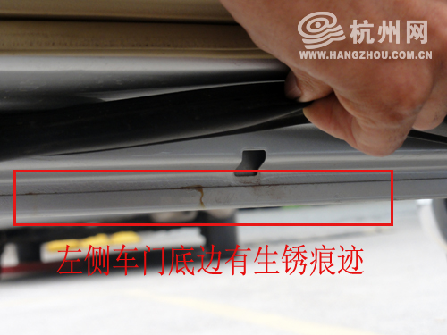 安徽来杭工作的赵先生今年5月10日在艮山东路的北京现代4S店购买一辆北京现代悦动轿车,裸车价91800元,第二天,他就发现车前预制板上有锈斑,于是找到4S店,4S店立刻就给他优惠10%退给他9000元,可是没过几天,车淋了一次雨后,他发现车的左侧门底边有秀水渗出,到其他4S店检查时发现,车的左边两扇车门不是原配的,是后换上去的。