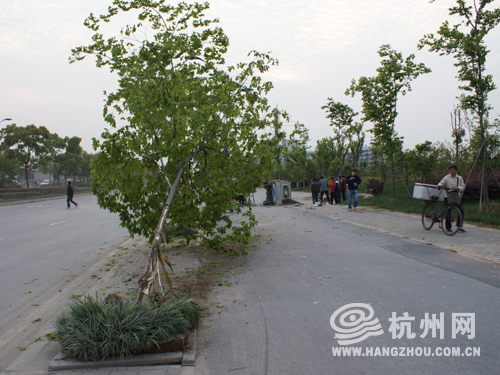 西湖执法局蒋村中队的徐苏民当时正在港桥附近巡逻,他对记者说,离事故发生地20米左右就是西溪实验学校,旁边就是港桥车站,平常西溪实验学校的学生都是在这里上下车的。幸好今天是周末,没有酿成大祸。绿化部门也表示,会尽快修复被撞倒的树。