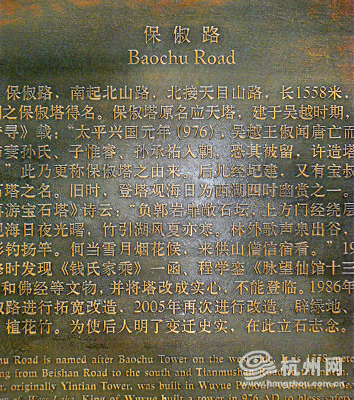 保俶路介绍牌上明确标注“Baochu Road” | 来源:杭州网 作者:见习记者 张睿 编辑:王宁 | |
