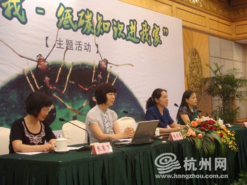今天下午,由全国妇联、国家科技部主办,浙江省妇联和杭州市妇联协办的“科技与我——低碳知识进我家”主题活动在新侨饭店举行。来自上城、下城、江干和拱墅四城区的近200位家庭代表,聆听了一场“倡导低碳生活 建设低碳城市”专题报告会。