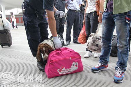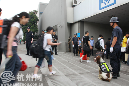 全副武装的缉毒警在火车南站出站口查缉毒品