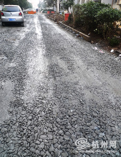 无论是走路的、骑车的还是开车的,都对这条坑洼崎岖的石子路表示很无奈。