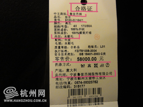 请消费者注意,如果您在杭州大厦二楼宁波鲁彼昂姆专柜购买过这一款夹克,生产单位为:宁波鲁彼昂姆服饰有限公司,货号为9120-02164/1内胆标注为水貂毛的夹克,请与杭州网新闻热线0571-85052222或15990167078钱炜记者联系。