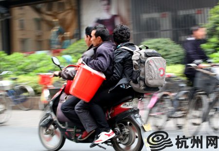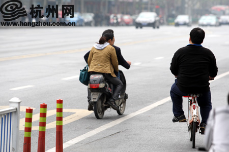 不文明的现象集中表现为,骑电动车带人、电动车和自行车逆向行驶。外地牌照的车多数是在班线前不避让行人。