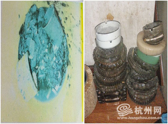 发现的烟蒂以及没收的烟灰缸。
