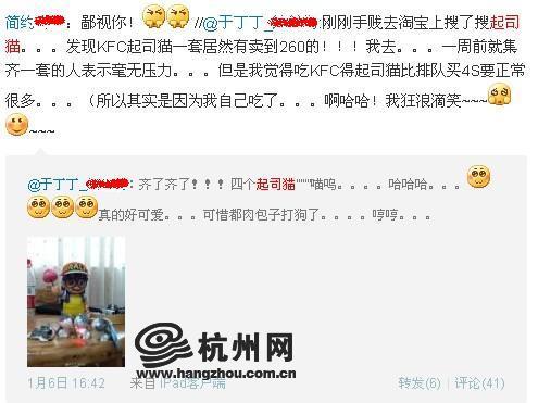 网友“大大大晨文艺范”无比哀怨地说:“真是太坑爹了,肯德基的起司猫居然在网上卖得那么贵,早知道就去吃套餐多买几只了。”
