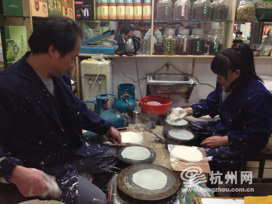 摊主金师傅告诉杭州网记者,开门营业才2个多小时,他已经卖出了大约30斤春饼皮。前几天他平均每天要卖70、80斤,而因为今天下午3点就收摊了,所以估计销售量也是这个数。