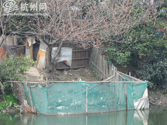 那么,这些油污和黑色的漂浮物到底来自哪里?张师傅表示,主要和居民的生活污水排放有关系。“经常有居民在河边洗衣服、洗菜,有些还直接把粪便倒入水中。”而就在现场,记者也看到,有居民将河岸的部分水域包围起来,在里面养了四五只家禽。