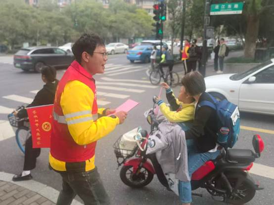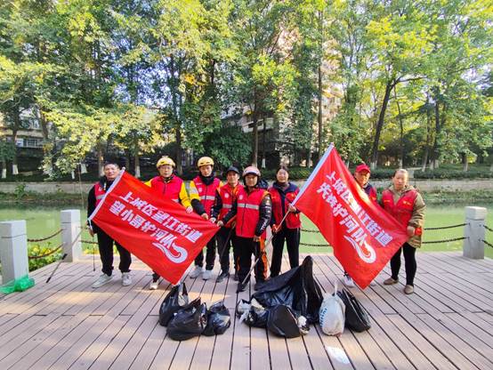 去年,在望江街道的支持下,彭清林注册成立了“清林公益服务中心”,如今已凝聚起一支五六十人的小哥志愿者队伍。这两年,他带着这群“城市奔跑者”在公益路上也跑出了自己的节奏:每周三,他们穿上红马甲,走上街头劝导文明骑行,倡导“不超速、不逆行、不抢灯”;每周五下午,他们又化身“巡河护卫队”,沿着杭州河道捡拾垃圾、守护水清岸绿。