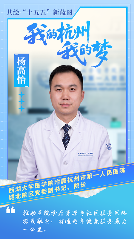 | 从深耕临床的医学专家,到擘画发展的特色院区管理者,全国敬老爱老助老模范,西湖大学医学院附属杭州市第一人民医院城北院区(杭州市老年病医院)党委副书记、院长,主任医师杨高怡的角色转变之路,与杭州应对老龄化挑战的时代脉搏同频共振。 面向“十五五”,长期扎根老年医学研究的杨高怡畅言心中所思所想:“每家都有老人,人人都会老去,我们要为老年人创造可感可及的健康支持体系。比如尽快破解‘老年失能群体居家照护断层’这一社会性难题,让每一位老人都能在熟悉的环境中享有尊严、安全与温度。”