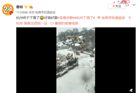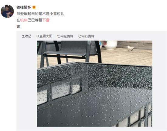 | 网友表示:刚刚杭州下雪子了!2020年第一场雪今天会飘起来吗? |