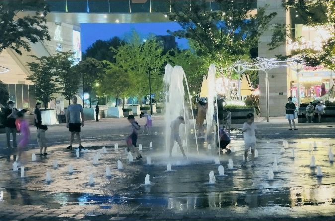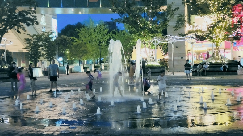 | 高温天商场室外喷泉成了孩子“戏水乐园” 有市民担心万一漏电后果不堪设想