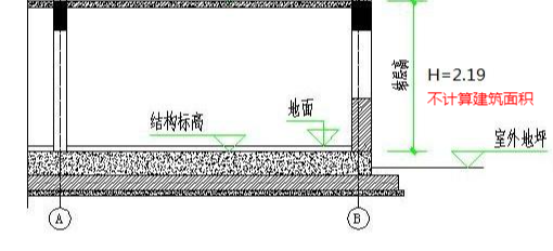 建筑出挑部分的下部空间(红色框内区域)不计面积 |