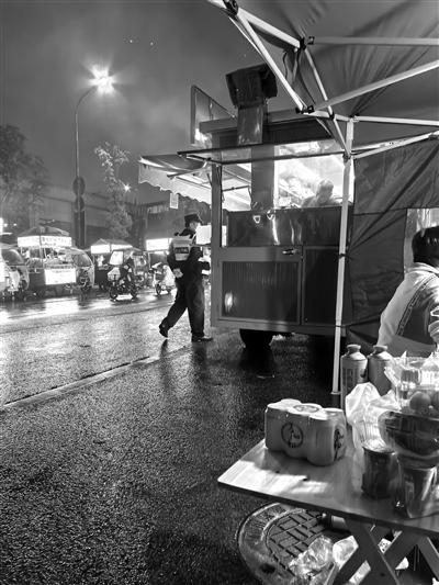 10月30日凌晨1点,昌运里三区西门“野生夜市”残留一地的垃圾。 “野生夜市靠低成本抢走了我的生意” 有沿街商家营收下跌三成 野生夜市拥堵交通的同时,也让周围的商家苦不堪言。根据12345投诉信息,记者来到余杭良渚街道吴家库社区良运家园139号门口,附近商户表示这个小规模的野生夜市已经扎根近两年。“经久不衰”的原因就在于靠近杭行路地铁站G1出口。“我们这里原本生意很好的,既靠近地铁口,又是小区的出入口,一天的营业额至少有400元,可自从这些流动摊贩来了后,营业额最少降了三成,我的房租都快付不出了。”柳丫鸭门店良运家园老板陈建红说,“野生夜市抢走了我的生意!” “这些无证摊贩就是蹭我们的流量,我们这些店面一般凌晨1点打烊,他们也凌晨1点收摊。”更让陈建红生气的是,一些摊贩通过压价的方式抢夺沿街商家的生意。“我隔壁店老板的炒饭卖8元一份,摊贩就把价格压到7元一份,甚至扬言如果我们再降价,他还是会比我们便宜1元。” 和陈建红有同感的商家不在少数。记者走访了附近的固定商家了解到,自从这些摊贩摆摊后,他们的生意就一落千丈。“我们或多或少都要缴纳房租和水电费,可那些摊贩只要一口锅一辆车就能和我们抢生意,实在不公平。” “我也多次向相关部门投诉这些流动摊贩,也的确会有管理人员到场劝离他们,可管理人员前脚一走,流动摊贩后脚又回来了,这种猫捉老鼠的游戏这一年多我看得太多了。”陈建红说。 夜市流动摊贩的出现也让附近三公里的外卖商家感受到了压力。黑哥饮料摊的摊主“黑哥”是昌运里三区的小网红,他每天都会出现在昌运里三区的夜市,在近半年的摆摊中,他一点点积累起了一个248人的微信群。“这些群友都是喝了我的饮料觉得好的顾客,他们在微信上找我下单,我可以提供3公里内的免费送货。”黑哥对于自己的生意经颇为自得。“这个微信群不是普通点单那么简单,每天群里都会有抽奖,抽中奖的群友可以免费获得一杯饮品,还有机会获得我左右两个摊位提供的甩饼或小吃。”黑哥灵活的头脑也让他和他的邻居们获得了流量。“通过微信点单的顾客和线下的顾客基本实现1:2,线上的都是老顾客,线下的都是新朋友。”有类似模式的摊主数量并不少,这也直接抢占了三公里范围内商家的生意。 人间烟火气最抚凡人心 夜市的出现有其必然原因 “野生夜市”的出现让一部分人烦恼,也让一些人饱暖。 江苏人董诗林在杭州从事网约车行业,他租住的房子离昌运里三区的夜市只有5分钟步行路程,这处夜市被他和朋友称作高架桥夜市。“网约车司机一般都要凌晨收车回家,昌运里三区周围住户非常多,但缺少夜宵店和饭店,这可能是这个夜市能火起来的原因之一。” 董诗林坦言,“距离我家最近的美食聚集地是万达广场,可我骑电瓶车过去都要15分钟,很不方便,而且那里的菜品相对较贵,没有夜市实惠。”董诗林的想法代表了部分人的看法。 家住昌运里一区的业主章女士介绍,自己是直播从业者,日常生活不规律,周边餐饮店无法满足她的日常所需。“我租到这里的原因之一就是附近有夜市,即便我深夜结束直播,也可以下楼吃到现做的饭菜,毕竟人间烟火气最抚凡人心。” 记者在昌运里三区附近走访后发现,该地段聚集了包括星汇园、青芒公寓、建发·缦云、昌运里一区、昌运里二区、运河印象等在内的多个小区,人口众多,但附近的餐饮店数量相对较少,距离较近的是名为忠意面馆的店面,距离昌运里三区近400米,高德地图显示,以昌运里三区西门为圆心,500米内的餐厅仅为14家,这远远无法满足周边居民所需。 夜市的出现并非毫无道理,有摊主表示,昌运里三区能形成如此规模的“野生夜市”,一方面是流动餐车越来越多, 大家都有趋众效应,另一方面则是附近居民的确有就餐的需要。“如果附近居民没有就餐的需求,我们在这里摆摊也不会有生意。” 我们也想找个固定夜市 烟火气与规则究竟如何平衡 10月30日晚上8点,天空中下着小雨,昌运里三区西门外夜市的“369小火锅”摊主王友的遮雨帐篷里坐满了顾客,从黑龙江来杭州创业的李军,此时他正和同事们一起在王友的摊位里聚会。他透露,自己的初创公司就在昌运里三区附近,每周他都会带员工来夜市聚餐。“这个摊主是我的东北老乡,手艺带着老家的味道,吃着暖心。”李军介绍,他的公司一共9个员工,600元钱能点一大桌子菜,大家都能吃得肚子滚圆。“特别是这家店还有我老家的炸蛐蛐,别提有多带劲了!” 谈及为何要在昌运里三区街头摆摊,王友有些无奈。“我以前在海宁做流动烧烤,后经人介绍认识了一个自称是夜市运营的老板,在对方介绍下,我花了十几万元买下了所谓的夜市摊位,最后对方人间蒸发了,听说杭州现在夜市经济很热,我也跟着老乡来碰碰运气。” 王友坦言,自己并非想做无证摊贩,但有了之前的遭遇不敢轻易相信。“我也去看过一些固定夜市,但最终还是没有入驻,这些夜市有的租金太高,有的地段太差,我也没有太好的选择,只能先在这里过渡。” 在黑哥的摊位里摆着三个保温桶,分别装着绿豆汤、鲜炖烤梨和玉米汁。“夏天,我家的绿豆汤是整个夜市最火的,一晚上能卖出100多杯,现在冷了,鲜炖烤梨销量好,一天能卖60杯。”谈及是否想找个固定滩位时,黑哥连连点头。“我们也想找个固定夜市,前提是收费别太