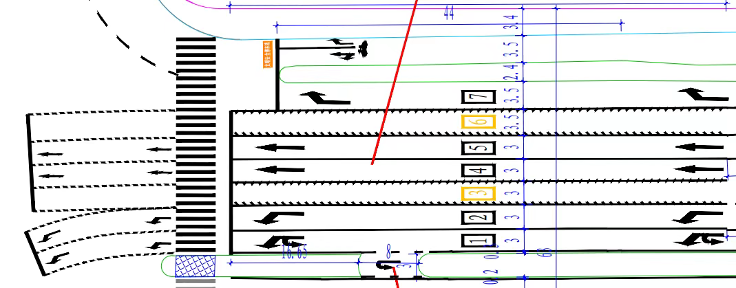 交改后 3.艮山西路新塘路路口 压缩北面中央隔离带并往东侧偏移,增加一个北进口车道,提升通行效率。