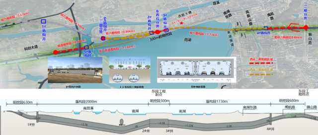 文一西路西延工程(二期)是浙江省“千项万亿”工程重点项目,工程东自狮山路起,向西延伸抵达南湖圩堤北侧的盾构接收井,全线长约3.6公里。该项目按照“快速路+地面主干路”标准实施,设计为双向六车道。