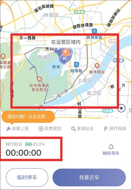 还车时,只要把车停放在电子围栏的租还区,就能顺利还车,不然无法锁车,也就是无法还车。 听到“还车成功”后,记者在页面上看到扣费成功,骑行不到15分钟,扣1.8元。