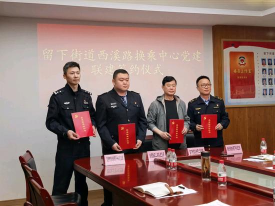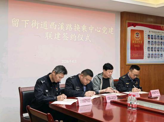 | 4月10日上午,一场以“党建引领筑堡垒・攻坚共建促提升”为主题的党建联建签约仪式,在西湖区东岳社区党群服务中心举行。留下街道机关第二党支部联合杭州公交电车分公司二车队党支部、西湖区综合行政执法局留下中队党支部、杭州市公安局交通管理支队西湖大队留下中队党支部共同完成签约,四方将以党建联建为纽带,携手为西湖景区・西溪路换乘中心的提质增效保驾护航。