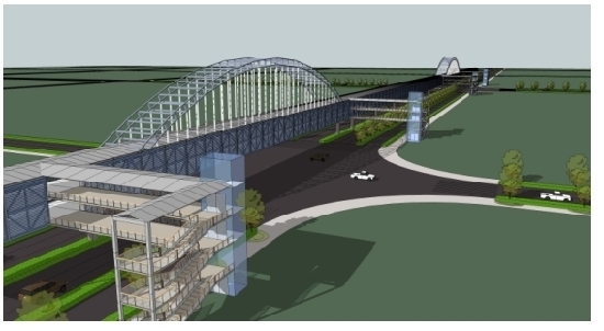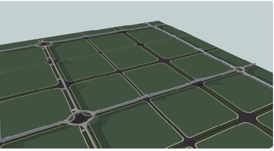 在规划布局上,考虑到既要方便行人通行,还要适当节约造价,这种建造于城市道路上方的空中非机动车道,建议规划间距为 1000 米左右,这样每个站点的服务半径约为 500 米。如图 5 所示。间距太大,需要较多的地面骑行距离,间距太小,工程量太大。