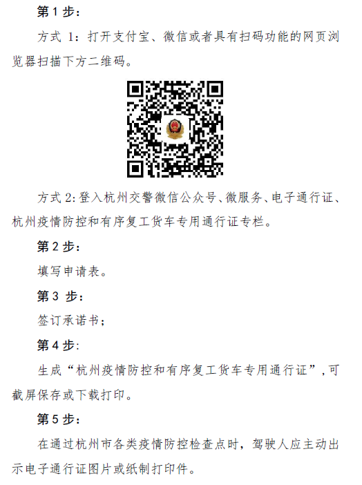 | 杭州已办理复工货车电子通行证2万余张 交警奉上通行证申请和使用流程 |