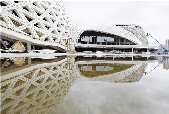 8月25日,杭州钱塘区金沙湖大剧院项目正在做外立面幕墙安装,目前已完成工程量的80%,预计明年建成开放。该项目总建筑面积约4.4万平方米,主要分为两个功能区块,1400座剧院厅和500座多功能厅两大区域通过共享大厅相连。