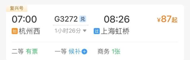 调整前,杭州西站到上海虹桥站最低需要97元。实行更大优惠力度以后,杭州西站到上海虹桥站最低只需87元。