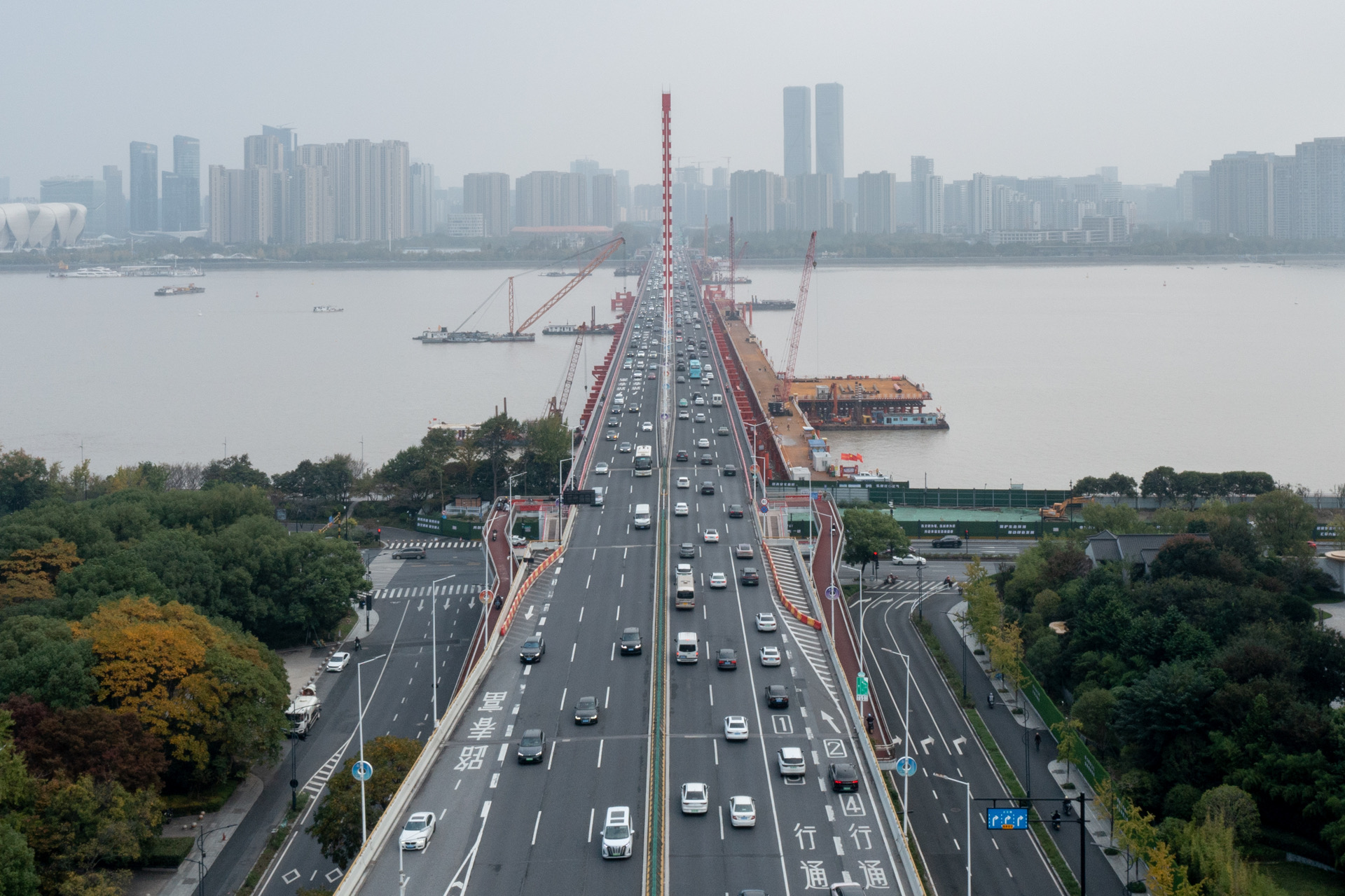 据了解,钱江三桥改建后,主桥为上下双层钢结构形式。上层桥梁为双向八车道城市快速路,设计时速80公里;下层桥梁为“双向四车道城市主干道+两侧7米宽慢行系统”,主干道设计时速60公里。
