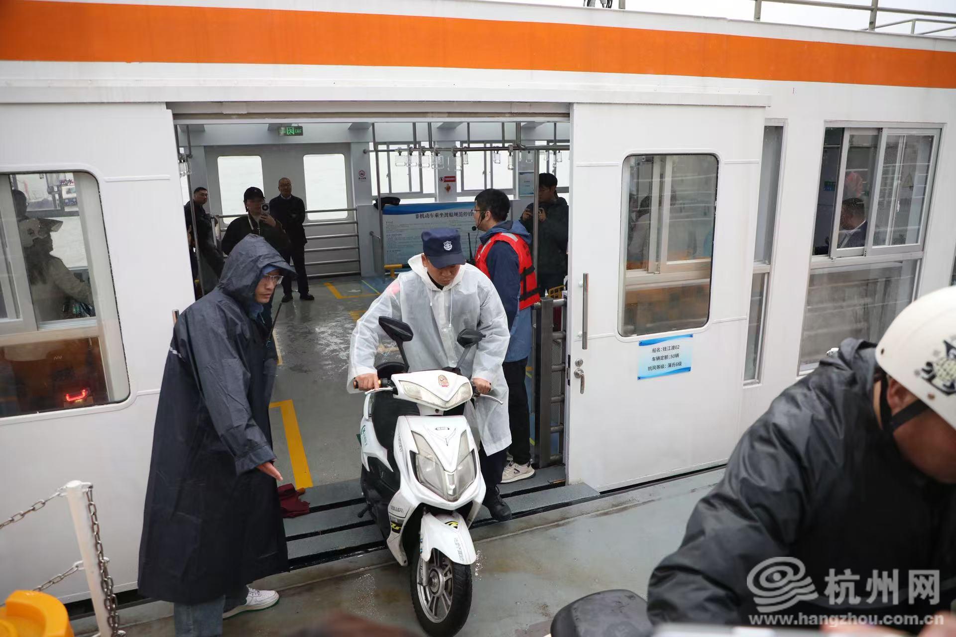 15分钟到达对岸!轮渡又快又稳 上午10点,记者登上“钱江渡02号”,船舱内已有不少非机动车稳稳停靠。“船只即将离岸,可能存在颠簸,请大家握紧扶手,当心脚下安全!”随着引导员的温馨提示,轮渡缓缓驶离码头,行驶过程又快又稳,几乎没有明显颠簸感。 船舱不算大,但规划得一目了然:地面上,明黄色标线清晰划分出6个非机动车停靠区,每个区域都标着数字编号,刚好容纳50辆自行车、电动车有序停放。车位上方,金属杆从舱顶错落垂下,杆上密集挂着110个透明拉手,方便车主与随行人员抓握。船舱后方的柜子里,临时药箱、救生衣均按足量标准配备,空调、灭火器、防爆消防架等安全设施一应俱全,让这趟旅程安全又有保障。 航行15分钟后,船到岸了。“我们测算过,从进入候船区等待,到登船至航行结束上岸,全程大概25分钟。”杭州水陆交旅发展集团有限公司总经理助理李林蔚介绍。记者实测对比发现,从北岸的城市阳台渡埠到南岸的奥体中心渡埠,经博奥隧道车行距离7.3公里,非高峰时段需23分钟,轮渡与地面通行所需时间相近。 3艘渡轮两岸对开,高峰时段15分钟一班 据了解,钱塘江轮渡日常配备3艘渡船,每艘核定载运50辆非机动车,轮渡运营时间为每日6:30(首)至18:30(末),早晚高峰时段每15分钟一班,平峰时段每30分钟一班。北岸乘船点设在城市阳台渡埠(位于之江路和庆春东路交叉口),南岸乘船点设在奥体中心渡埠(位于闻涛路和飞虹路交叉口)。市民搭乘轮渡过江最快大约需要25分钟,其中,轮渡单向航行时间约15分钟,两岸渡埠候船区上下船大约共需要10分钟。 “当前设置的轮渡服务是一项补充性的通行保障,主要是面向那些确需使用非机动车出行的市民。”李林蔚表示,“建议市民朋友优先选择复兴大桥、彭埠大桥等现有通道绕行,或乘坐地铁、公交等公共交通工具。”
