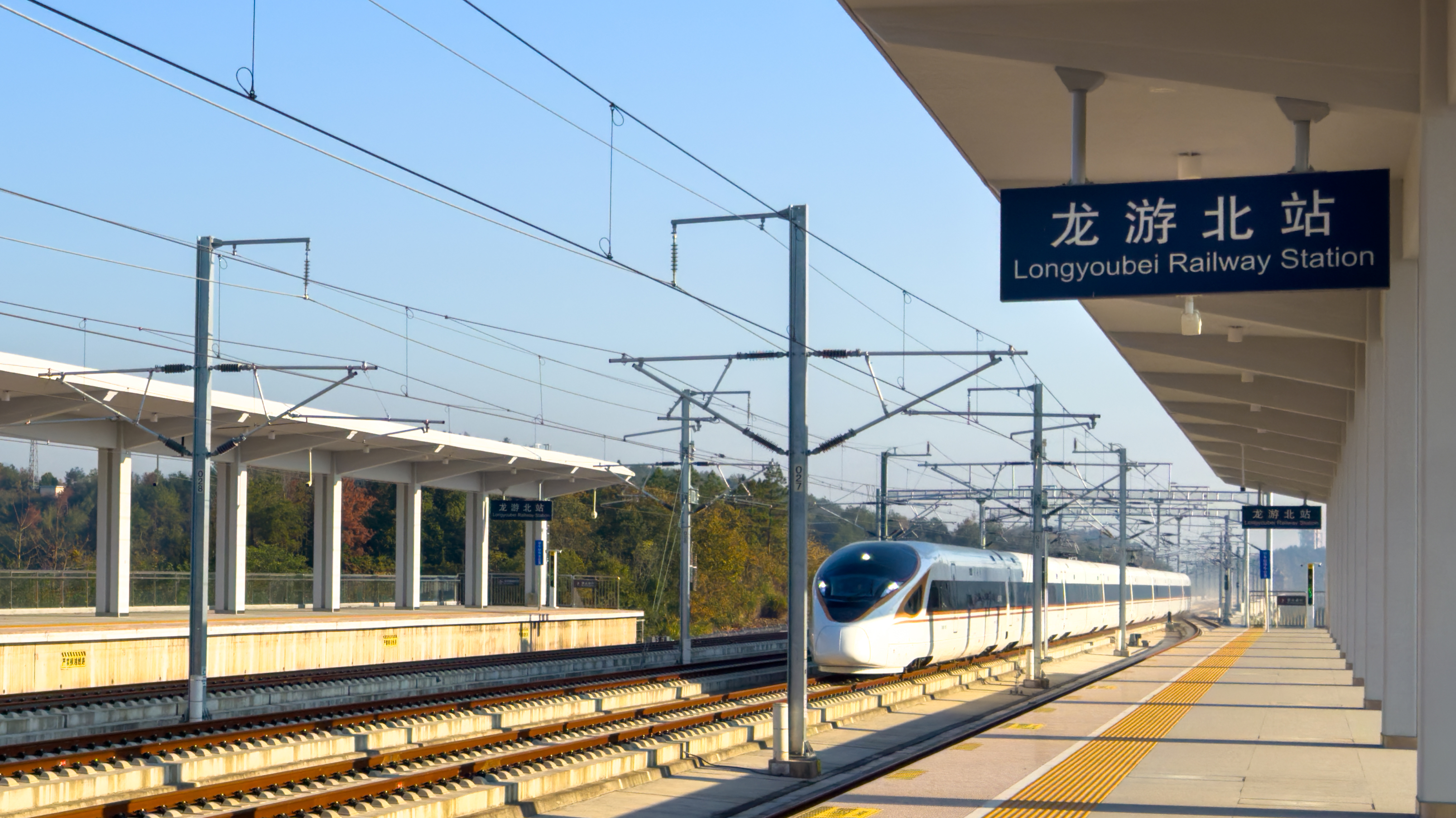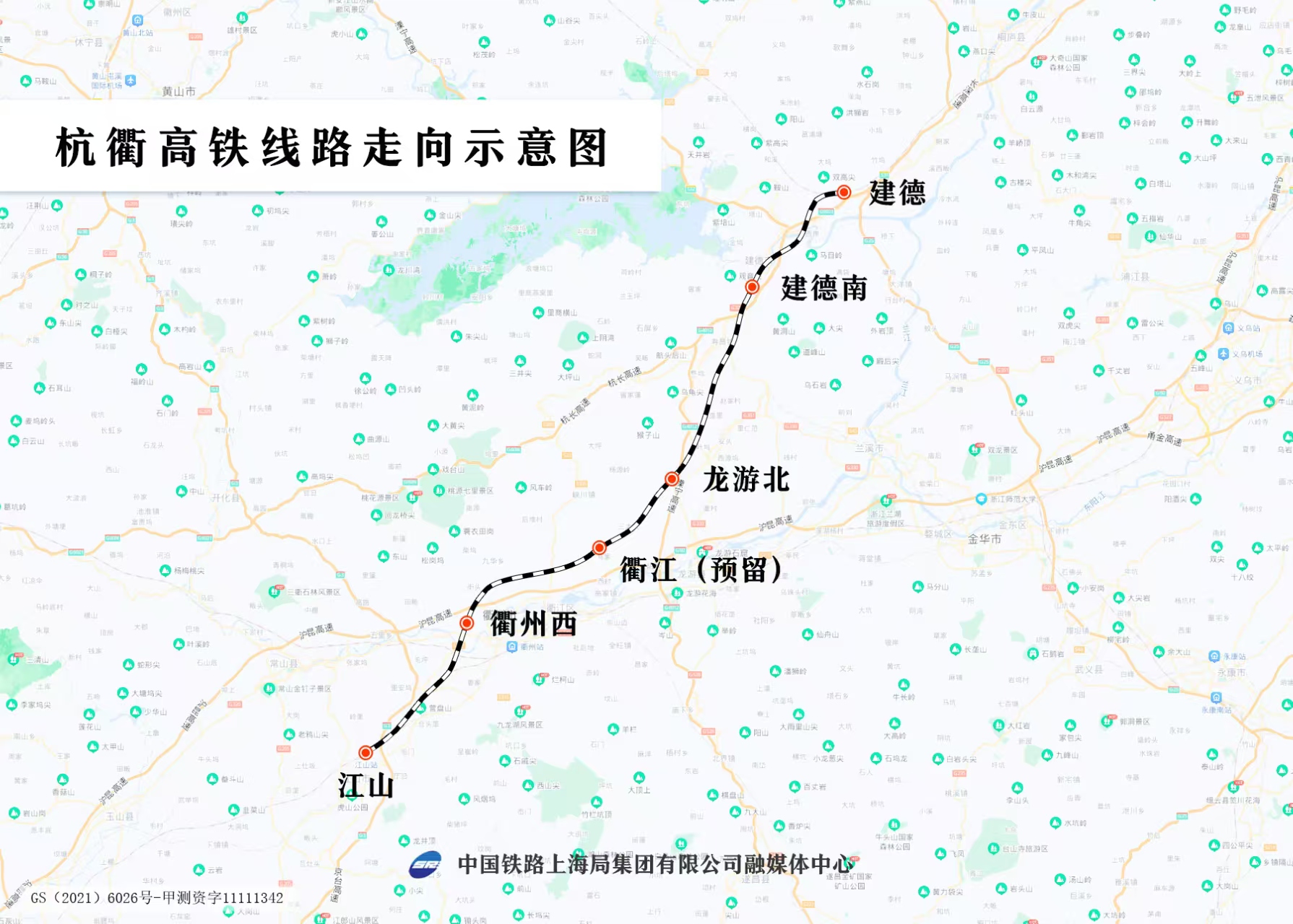 11月20日,首趟试运行列车驶过杭衢高铁龙游北站。 陈镓骆 摄 杭衢高铁线路起自杭州市所辖建德市,途经衢州市所辖龙游县、衢江区、柯城区,终至江山市,正线全长约131公里,设计时速350公里,共设建德(既有)、建德南、龙游北、衢江(预留)、衢州西、江山(改扩建)6座车站,桥隧比达78.7%。