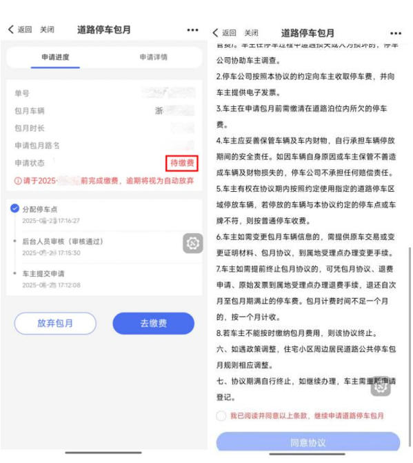 3.签约。查看申请进度,显示状态为“待缴费”,则表明已获得包月名额,请在规定时间内完成协议书签订。
