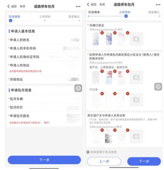 2.填报。根据界面提示填报信息,并上传房产证、户口本、车辆行驶证等证明,上传信息确认无误后点击提交。