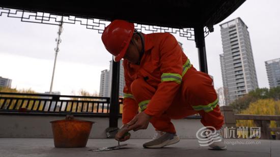“根据地”的冬日烦恼:美景之下藏隐患 这座依河而建的凉亭,视野开阔,即使是在冬季,河畔的景色也别有一番萧疏清朗的韵味。因环境开阔且远离居民楼,这里成为了周边市民每日散步、晒太阳、开展户外活动的重要场所。以王阿姨为代表的一群舞蹈爱好者,更是数年如一日,无论寒暑,只要天气尚可,便准时在此相聚。 “冬天活动活动筋骨,身上暖和,心情也好。我们这群老伙伴都离不开这儿了。”王阿姨说。然而,随着时间的推移与风雨霜冻的侵蚀,凉亭内铺设的部分地砖开始出现裂纹、破损和局部翘角。 “前几天,这块砖角翘得明显,路过都得绕着走。那边裂缝也不小,万一踩到破损的地砖崴了脚,那可就麻烦啦!”舞友李女士指着现已修复平整的地面回忆道,“冬天衣服穿得厚,行动本来就没那么灵便,地面再不平整,跳舞时心里总不踏实。” 大家珍爱这个老地方,不愿轻易更换场地。于是,解决问题的需求变得迫切。最终,一位舞友主动联系了城市河道的养护人员,详细说明了情况。