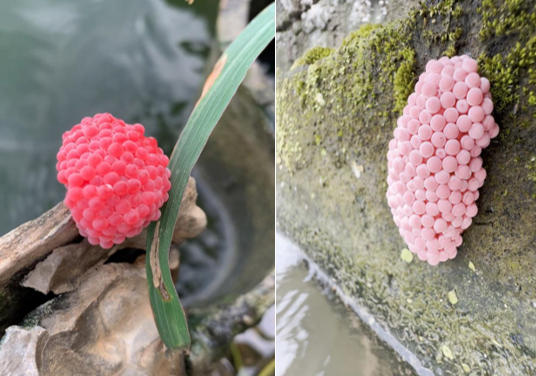 | 春日杭州的河道边水清岸绿,正是散步的好时节。但细心的市民朋友会发现,河边的石块上、植物茎秆上,依附着一串串粉红色的迷你葡萄,别被它鲜艳的外表迷惑——这不是什么新奇植物,而是外来入侵物种福寿螺的卵块。 每年4月至6月、8月至10月,是福寿螺产卵和孵化的高峰期,近期气温攀升,福寿螺也将进入全年最疯狂的繁殖期,杭州市水设施河道中心紧急提醒:发现粉红色卵块请立即上报!