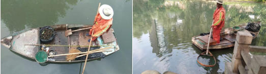 对成年福寿螺用网兜捕捉打捞 杭州城管温馨提醒:若发现福寿螺或粉红色卵块,请立即联系当地养护管理部门,切勿随意触碰、丢弃或放生!